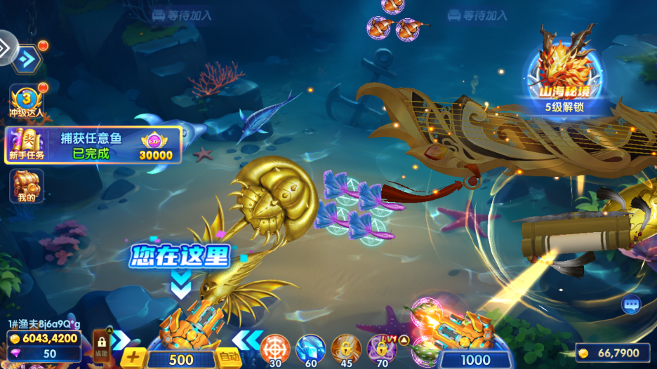 2、金币不多时,建议多捕获小鱼,慢慢积累金币,等到积累一定程度之后,一般鱼群也刚刚好出现,这个时候一定要把握好时机,将鱼群收入囊中,使自己的财富更进一步,然后把目标对准BOSS,一步一步往高处走。