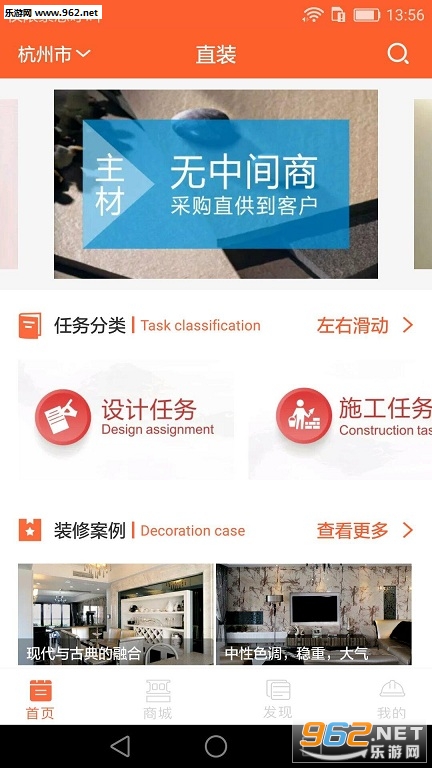 装修不用在东奔西跑,线上一站式解决装修烦脑,实现设计、施工、报价、管理设计:方便、快捷--待装业主注册审核通过后,可在线免费获得三稿设计方案进行对比。任务发布时可根据自身要对设计师提出要求,在线分发相应要求的设计师进行设计,有效节约业主时间成本。