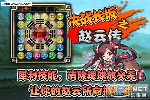 《决战长坂之赵云传》是一款结合了战斗元素的三消游戏,以著名的三国人物赵云为游戏角色,他有血量、攻击力、防御力还有法术条,这些配备让赵云能够更快过关。游戏画面非常精致,Q版人物形象也非常可爱,赶快下载吧。