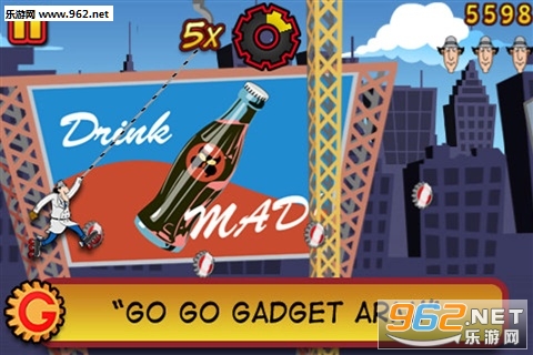 让Gadget利用火箭溜冰鞋、降落雨伞、超级跳跃和钩锁手臂,不断的避开各种障碍,去追踪抓走Penny的Claw博士。这些障碍从狂奔 而来的火车到空中的高压电线,从地上的香蕉皮到空中的飞鸟,甚至是Claw博士亲自过来向Gadget扔炸弹。保持不受到伤害,也不被香蕉皮飞鸟碰到,坚 持收集一段时间后Gadget的火箭溜冰鞋将会发挥威力,让Gadget的前进速度倍增。但是这样也会令Gadget躲避障碍变得更困难,因此要注意应对。