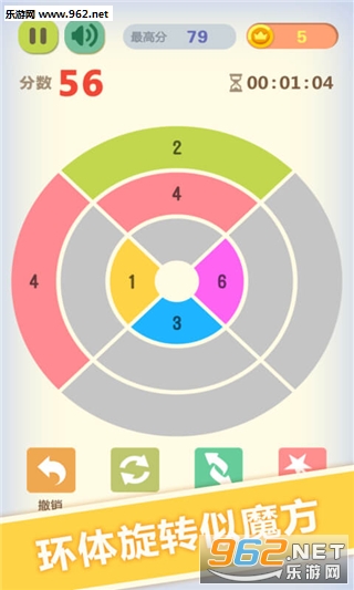 玩法类似于2048,玩家需要转动圆环,使得相邻的相同数字来合成更大的数字,同时不断转动和合成,获得更高的分数。