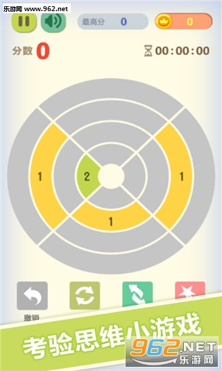游戏的操作模式主要是通过玩家不断转动每一个环,转动后两个相邻的颜色相同的数字,会合并成1个更大的数字,同时转动后会在空白的位置处随机生成1-2个新的数字。