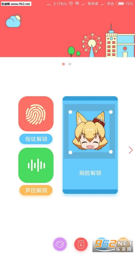 好玩有趣的锁屏工具,集合刷脸、声控、指纹、手势、密码、滑屏等多种解锁方式,支持DIY锁屏。更有应用锁,锁屏小工具,抢宏包助手等功能