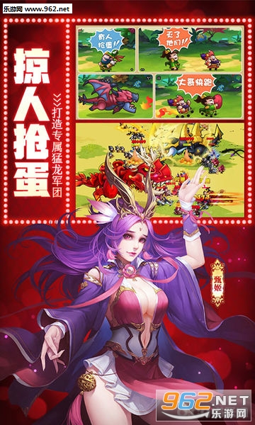 骑龙打天下!《驯龙主公》首创全新龙之三国。游戏将三国名将与龙这个强大的物种完美结合在一起,每位名将都有着专属的龙坐骑,它们不仅形态各异,更能在战斗中随时召唤助你破阵杀敌!