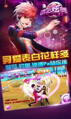 《唱吧绚舞》全新版本“世纪佳缘·我们结婚吧”甜蜜上线!浪漫婚礼,全民为你和ta做见证!沙滩、酒吧、游艇完美模拟浪漫场景与他/她邂逅,打造大型人气3D音舞手游;上千种服装设计完全自主DIY搭配,萝莉、御姐、朋克、绅士,在这里你能任性穿搭出自我;现今,指尖恋爱全民时代已经开启,快来寻找属于自己的倾世之恋吧!