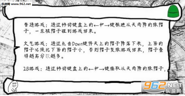 3、2B游戏:通过移动来接取从天而降的绿帽子。