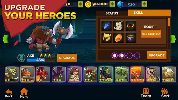 3、高等精灵,骑士,兽人,收集你各种不同的英雄,强大你的队伍去更好的战斗