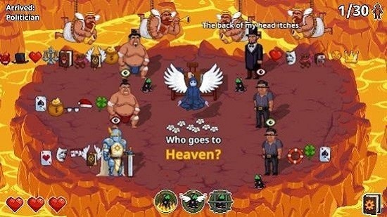 3、游戏的玩法十分有趣,玩家扮演的是一位死神来分辨好人坏人决定他们是上天堂还是地狱,你要弄清楚这些人到底属于哪一个层次的。