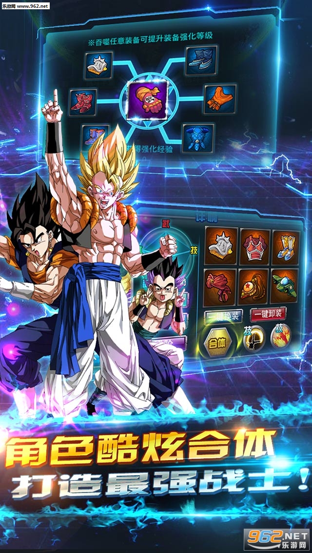 游戏以策略性的玩法、酷炫的战斗、精致的画面,无比虔诚的世界观,高度重现了七龙珠中超级亚赛人火爆剧情,是一部最贴近原著七龙珠的手游力作!