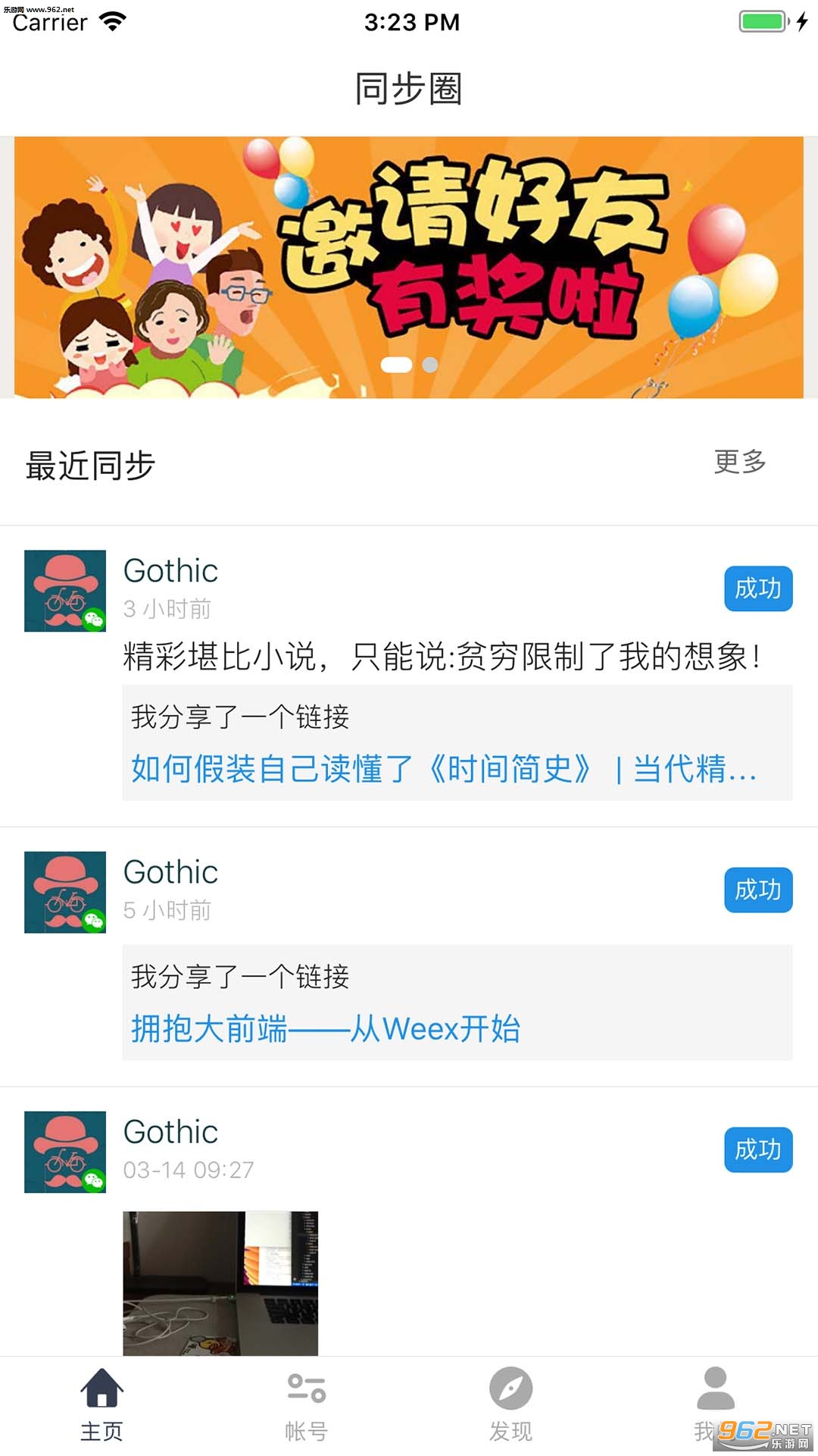 1.打开同步圈APP,在关联界面添加关联帐号。