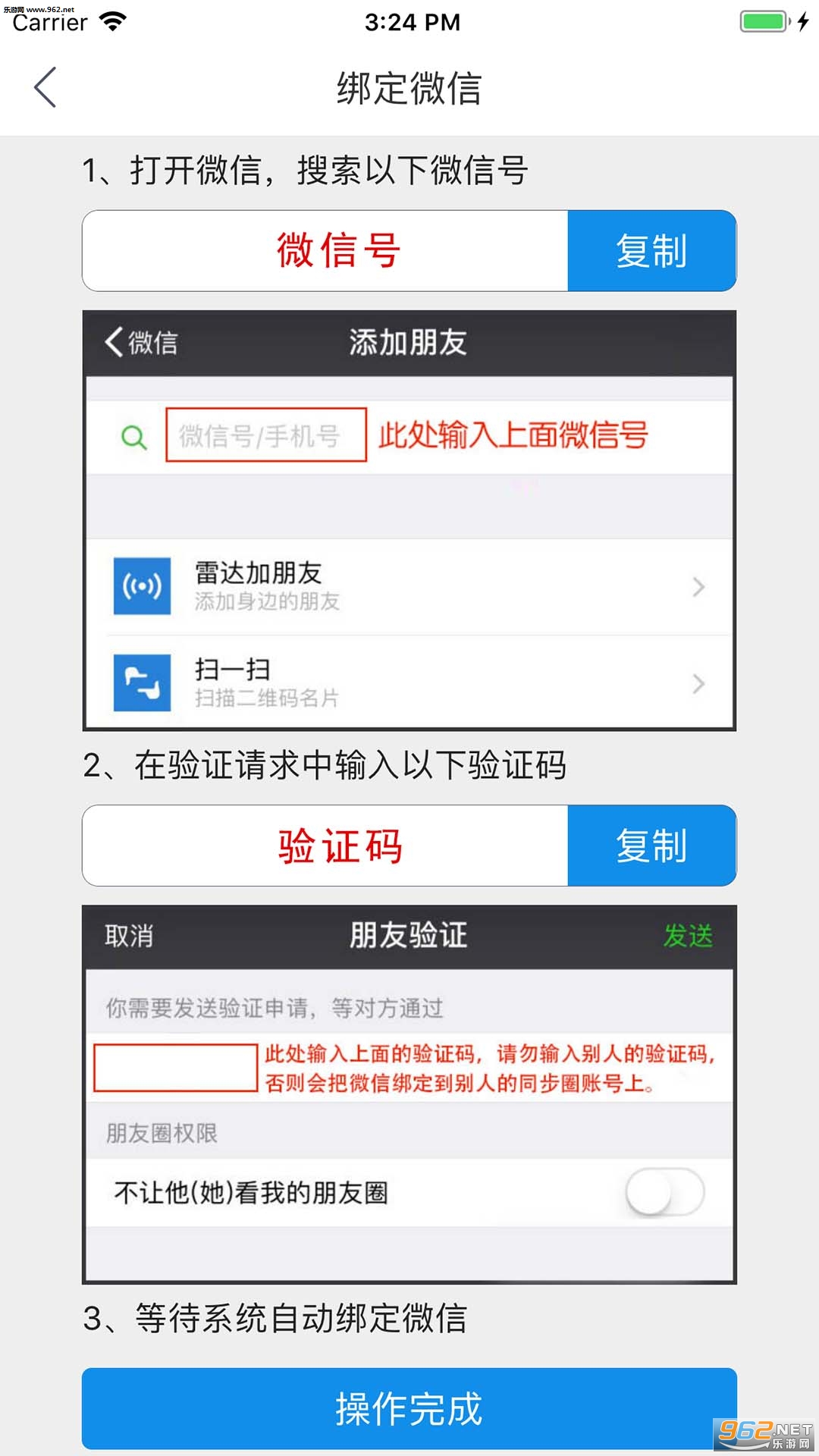 2.绑定,添加同步圈为好友,在验证申请中输入验证码,成功添加好友后点击确认绑定。