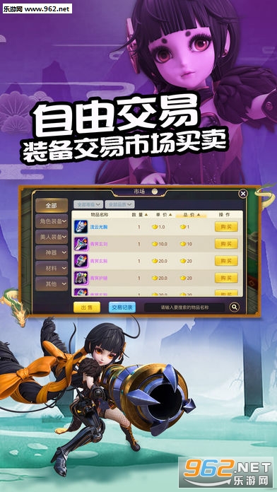 游戏里大部分的道具都可以相互流通,由玩家之间决定市场经济。低价的材料可以通过摆摊,让玩家间互通有无,完成游戏里的任务。高级的装备、宠物则可以通过拍卖,换取元宝。