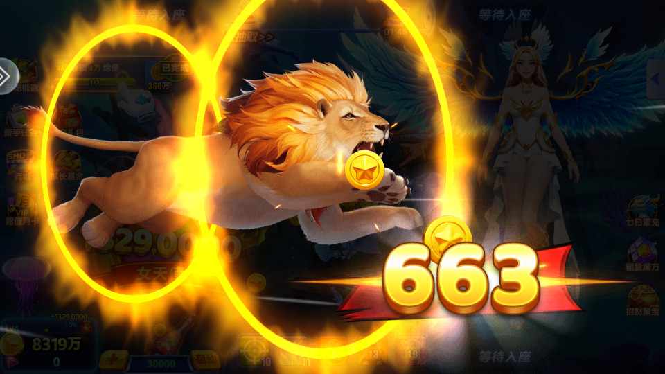 2、开炮会消耗金币,而捕捉到鱼会得到金币;