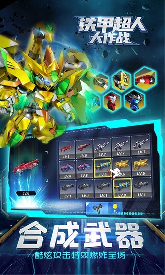 2、各种酷炫高科技武器等你来解锁,自由组装机甲消灭面前一切敌。