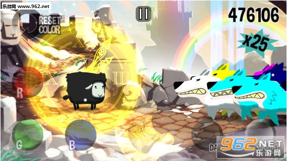 成群结队的恶狼要去袭击这只可爱的绵羊,绵羊变身去击退这些恶狼,保护自己。点击红绿蓝按钮,并且搭配亮光和暗光,把绵羊变成不同的颜色。混合三原色还能变成更多的颜色,开动你的脑筋,去闯更多的关卡吧。