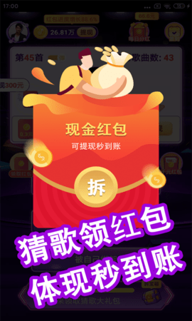 1、根据前奏进行猜歌答题,答对闯关就能领取红包,每日挑战趣味多多