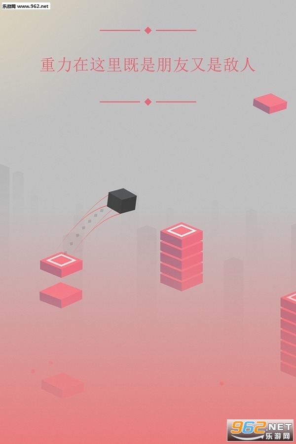 一个独特的方块的神秘之旅将在你手中拉开序幕。你将去寻找和谐的起源并放着领域被黑暗所侵蚀。说的这么虎,只需要你跟发射弹珠一样发射方块,让他跳到高台上不掉下去就可以啦。