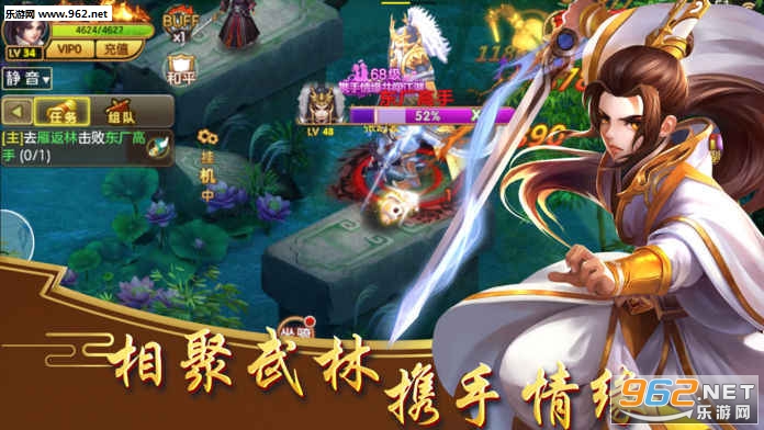 游戏中玩家可以在多个门派中自由挑选,加入自己喜欢的门派,学习强大的武功心法提升实力,一步步走上武林至尊的宝座。随时可战高手擂台激情一触即燃,还有激情的频道玩法交互模式。
