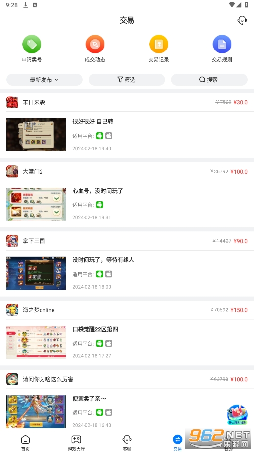 点击申请卖号