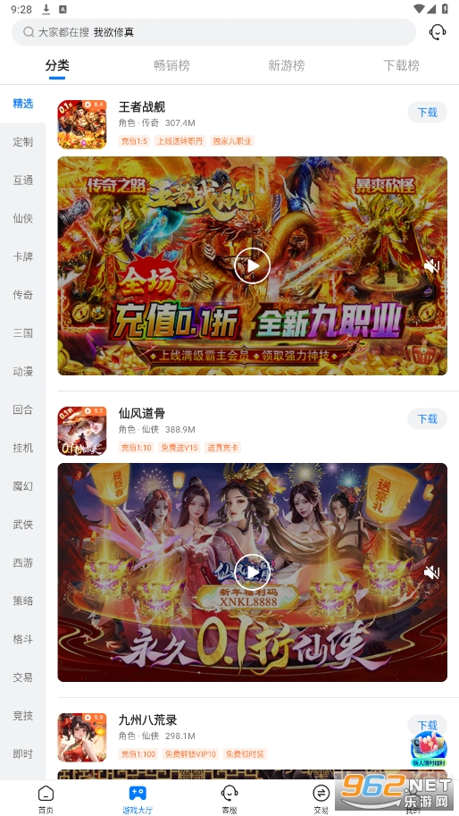 1000多款正版手游均支持折扣充值;