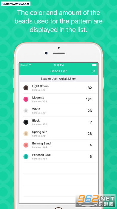 使用的拼豆的数量,颜色和项目编号显示在“拼豆列表”上。