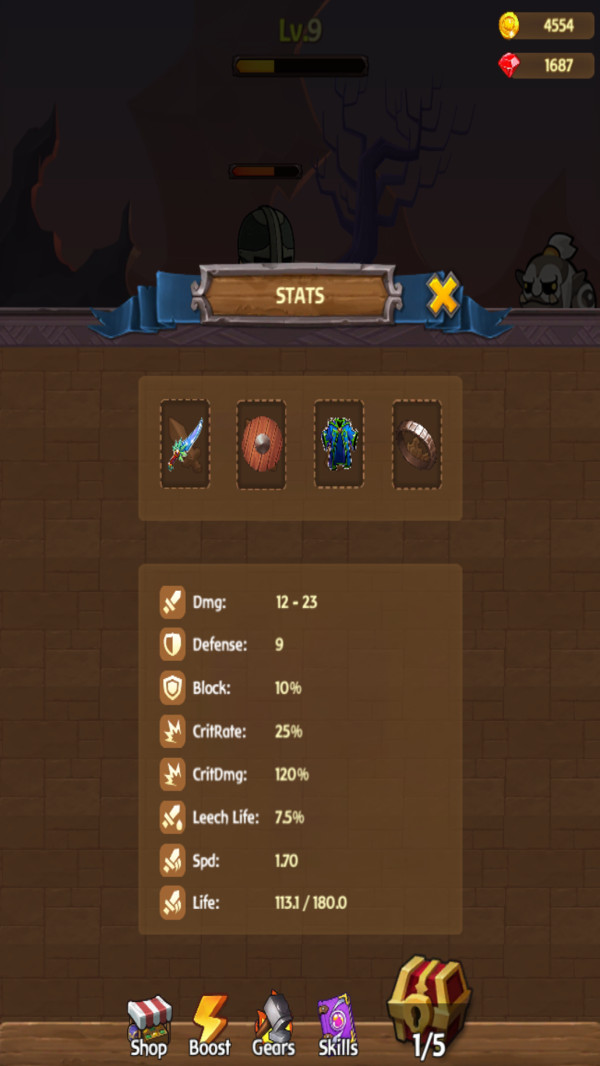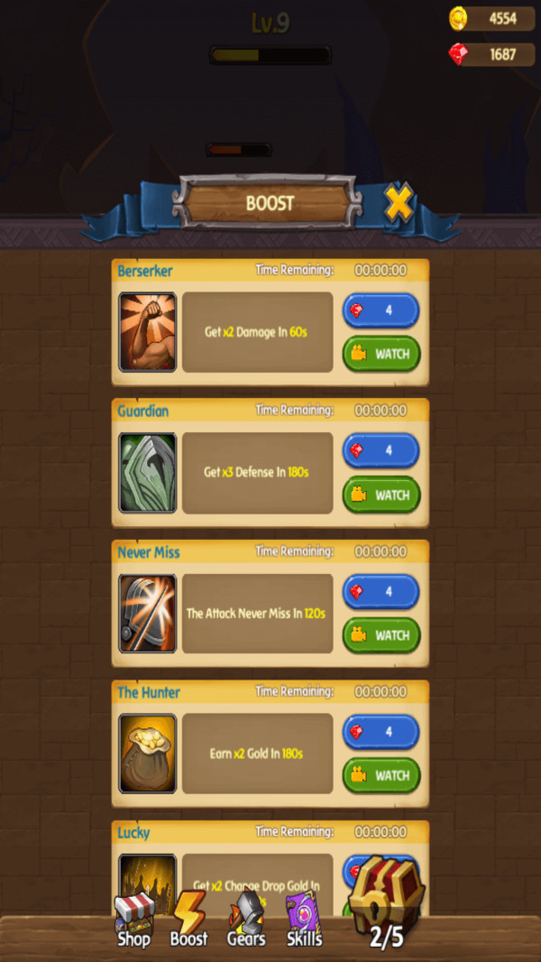 1、空闲地牢幻想有着丰富的技能树,角色死亡后适当的属性奖励反馈,各种怪物。