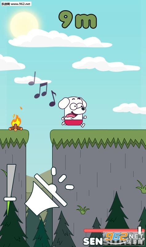 各位要是想要获得较高的分数,需要掌握不少技巧,更好的控制尖叫狗的前行。通过右下角调节声音敏感度,寻找到适合自己的音量,同时呢,也需要观察音量大小,控制好跳跃时所需的音量。细心控制你的声音来前进的更远吧。
