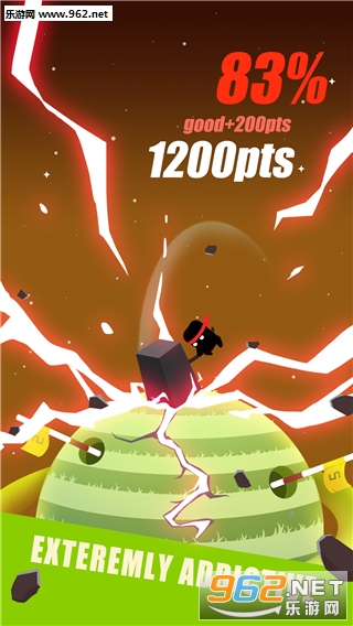 游戏的核心玩法就是在蓄力条超过要求值时按下,让人物可以给行星一锤,过了就可以锤破一颗星球,获得分数,前往下一关。
