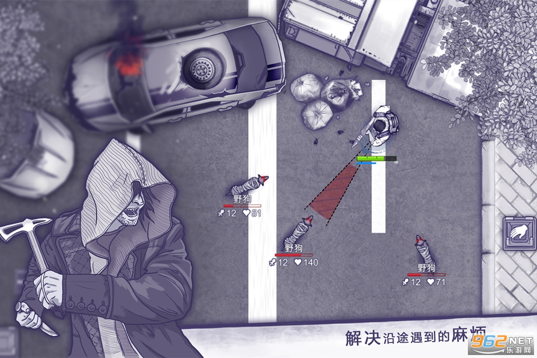 战斗不再是你一拳我一脚的贴图回合制。洞察每一只怪物的攻击方式与行为特征,利用地形与走位,随时切换武器——用手枪快速秒杀小怪,用铁斧击破防御,用弓箭风筝毒物亦或兼而有之。攻击力不足时,甚至可以利用操作满血耗死对方,再也不用担心路上被野狗骚扰耗血。