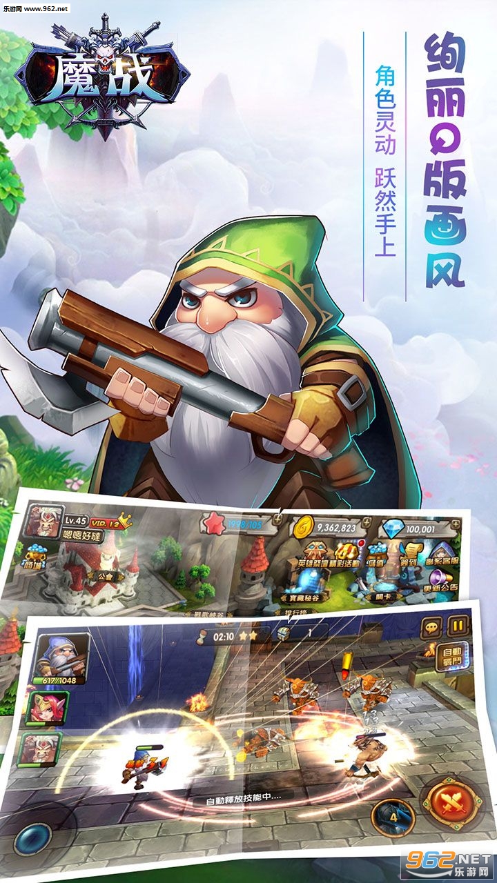 游戏模型高度精致,英雄战斗自然舒适,特效及场景表现极其炫丽,具有畅快的打击感和操作感,整体角色采用欧式Q版风格,色彩鲜亮细腻!Q版画风,角色灵动跃然手上,轻松玩转掌上RPG即时战斗,再谱掌上传奇。
