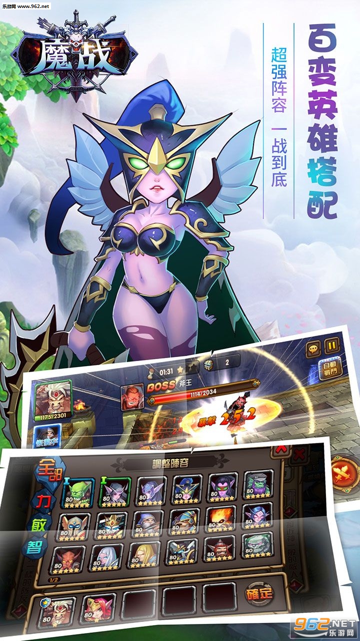 多达100种类型的特色技能,相互尅制相互补充,拒绝无脑策略尽显!游戏中的各个英雄都有自己专属的技能,也就注定各位人物都有自己的职业属性,肉盾、输出各有不同。同时的不同的英雄搭配,还能能打造出不同的战斗军团。玩家可以,选择三位英雄上阵,搭配专属组合,打造超强阵容!