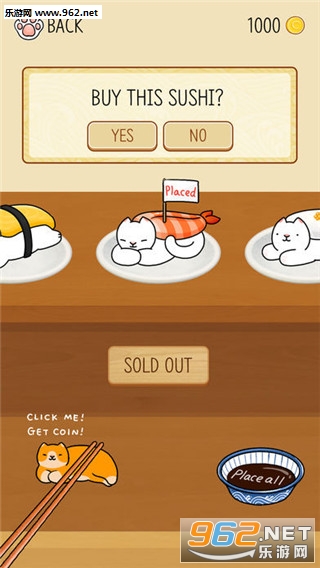 屏幕上方是回转寿司带,会有不同的猫咪以及寿司飘过