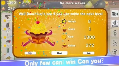 糖果炮塔防御是一款非常有趣的策略塔防游戏,游戏采用精美的画风,独特的玩法,大大的增加了游戏的可玩性,深受广大塔防玩家的青睐,游戏关卡非常丰富,每一个关卡都能给玩家带来不一样的游戏体验,还有丰富的道具供玩家使用,超多防守任务等你完成,当你完成任务会获得丰厚奖励,不过有时候也要注意不要太掉以轻心,不然很容易失败,喜欢的小伙伴快来下载试试吧。