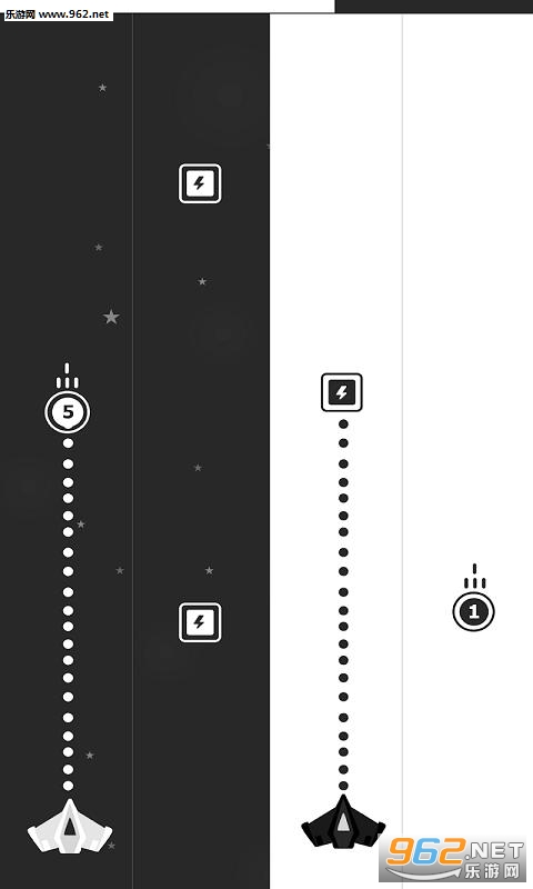 玩家双手控制两架飞机,在4条飞行轨道上击败敌人,获取能量。其实一比较就会发现,这就像音游的四个键位,十分考验双手的协调性,感兴趣的话,就来下载吧!