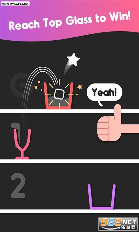 一款需要把握时机的休闲游戏,你需要将一个杯子里的冰块跑起来调到更高处的杯子中,只有短短的瞬间,抓住两个杯子重合的瞬间来将冰块转移,感兴趣的话,就来下载吧!