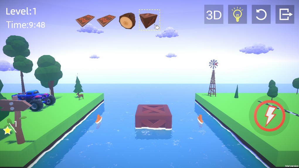 “Over Bridge”是一款集益智、策略与创造力于一身的物理益智游戏。玩家将置身于一个精美绝伦的风格化世界中,面对一系列精心设计的关卡挑战。游戏的核心在于利用物理原理,结合多样化的建筑材料和工具,设计出既实用又稳定的桥梁。通过解决各种复杂的谜题,玩家将不断提升自己的工程技能和创造力,享受智力挑战与艺术表达的双重乐趣。