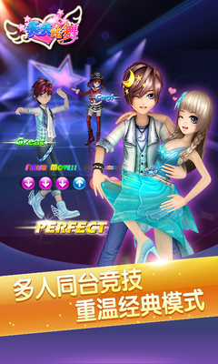 《一起来跳舞》由英雄互娱发行,劲舞团原班人马倾力打造的超人气3D音舞手游,在这里无论您是什么身份都可以找到属于您自己的友情爱情,快来一起开启指尖恋爱全民时代!