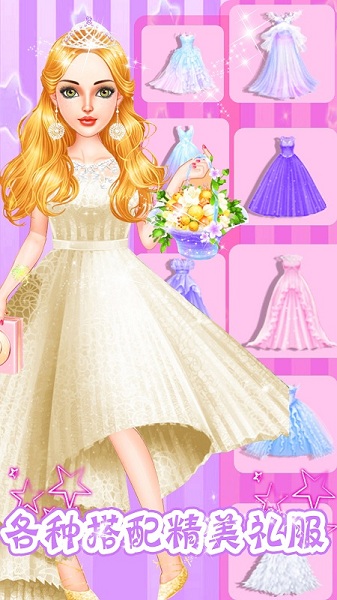 在《换装新娘》一起为少女搭配新娘礼服华丽穿搭,搭配精致妆发,全方位打造闪耀公主华丽装扮!