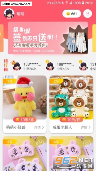 非常流行的抓娃娃手机软件,可以抓娃娃,手办、日用品等各种精美的礼物,两件以上而且还支持全国包邮。如果你是抓娃娃达人,千万不要错过这款精彩的软件!