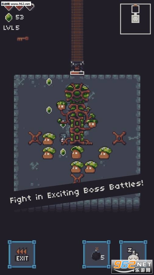 一款地牢冒险题材的回合制战斗手游,复古的像素风画面,各种各样的小怪等你来消灭,只要将它们全部打败才能成功通关,还有无尽的挑战模式等着你哦,快来下载吧!