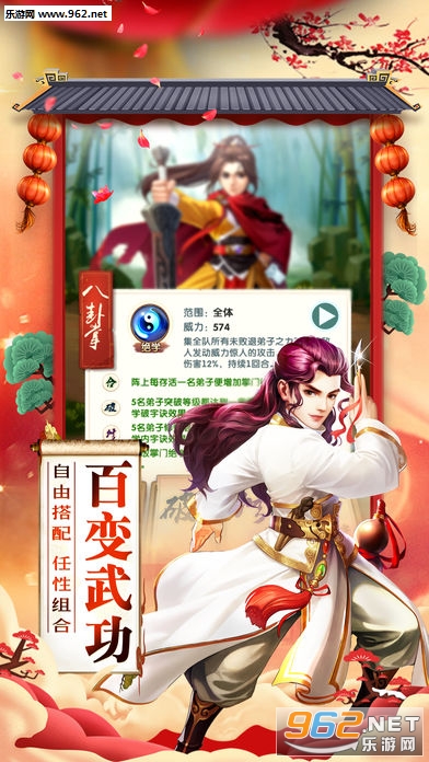 李寻欢、陆小凤、傅红雪、楚留香等各路几百名侠客,齐聚武林任你招募,自由搭配,强强联合!集齐特定侠客组合,更能达成独特合璧效果,战中释放超强合璧招式。掌门更可与众侠客同时上阵,获取侠客内力传功,释放独创掌门绝学。