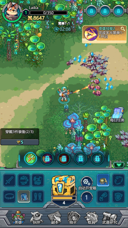 作为一名极具潜力的冒险家,你将帮助莱卡寻找资源,修理飞船,抵御强大的敌人!在这个充满挑战的星球上,稍有不慎就会陷入困境!