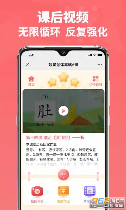 【课后视频 反复强化】课堂学习忘了么,不用怕。进入班级,在家也可反复观看本课精简视频,掌握书写要点,同时还配套有单字书写示范视频,可以针对单个字反复观看练习。课程视频不仅可以复习,还可以提前预习,让你的成长更进一步。