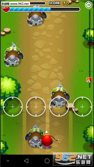 游戏画风Q萌,操作简单。帮助小红帽,利用手中的弓箭,消灭源源不断出现的大灰狼,成功到达奶奶的家里。