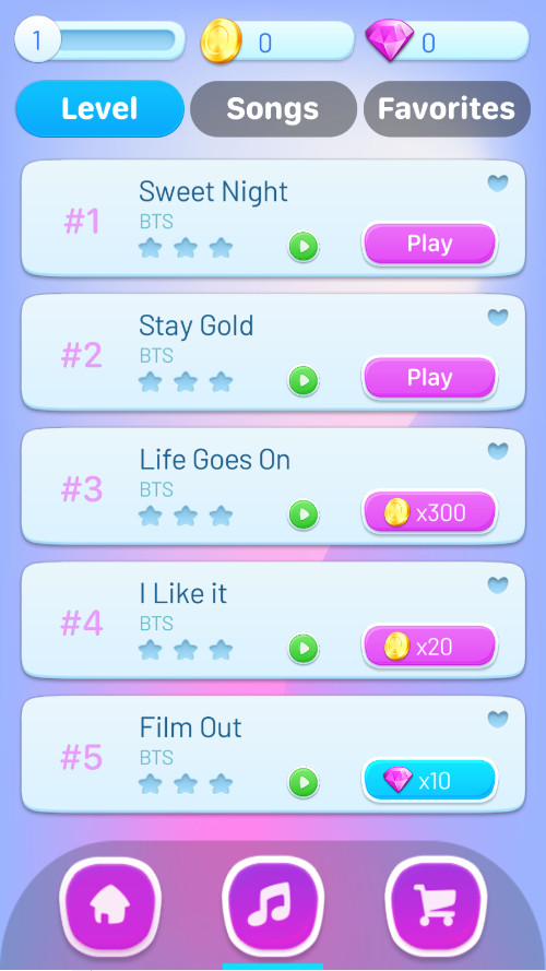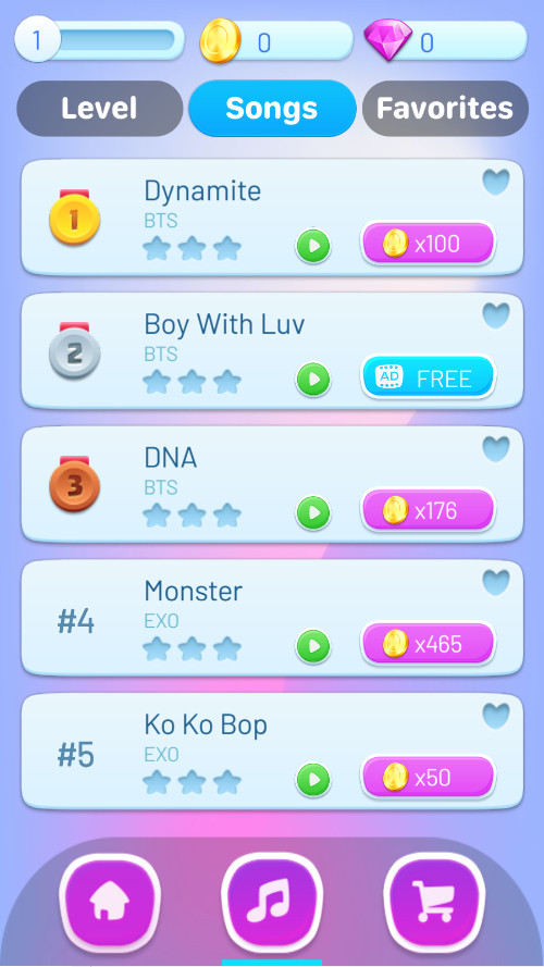 KPOP Tiles2是一款结合了韩国流行音乐与钢琴点击游戏的应用,让你在享受音乐的同时,体验指尖上的节奏游戏。游戏收录了Shinee、Bigbang、BTS、Black&pink等热门K-pop偶像的歌曲,让你随时随地与音乐互动。