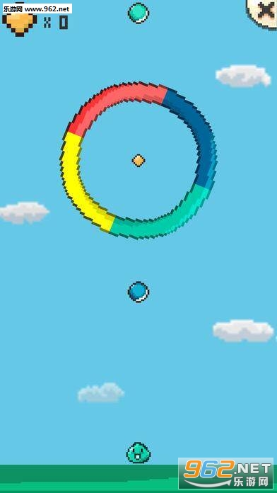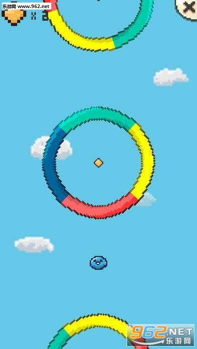 玩家点击屏幕即可控制主角向上跳跃,空中有四色的转动着的像素环。