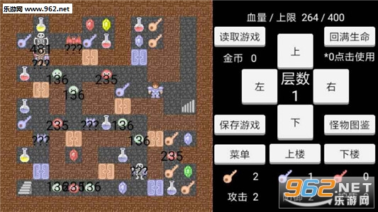 玩家只需要不断探索魔塔,收集各种有用的道具和装备,加强自己的属性和战力,最终去打败魔王拯救公主。