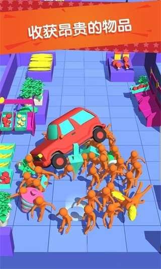 2、经典橡皮人的游戏画风,趣味休闲玩法,多人参与,竞技对决,看谁抢夺商品收益更多。
