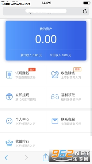 2、点击「开始赚钱」,选择在Safari打开下载 安装最新助手,开始赚钱。