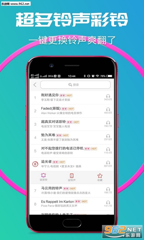 千万海量铃声随心换,一键设置来电、短信、闹铃、彩铃;